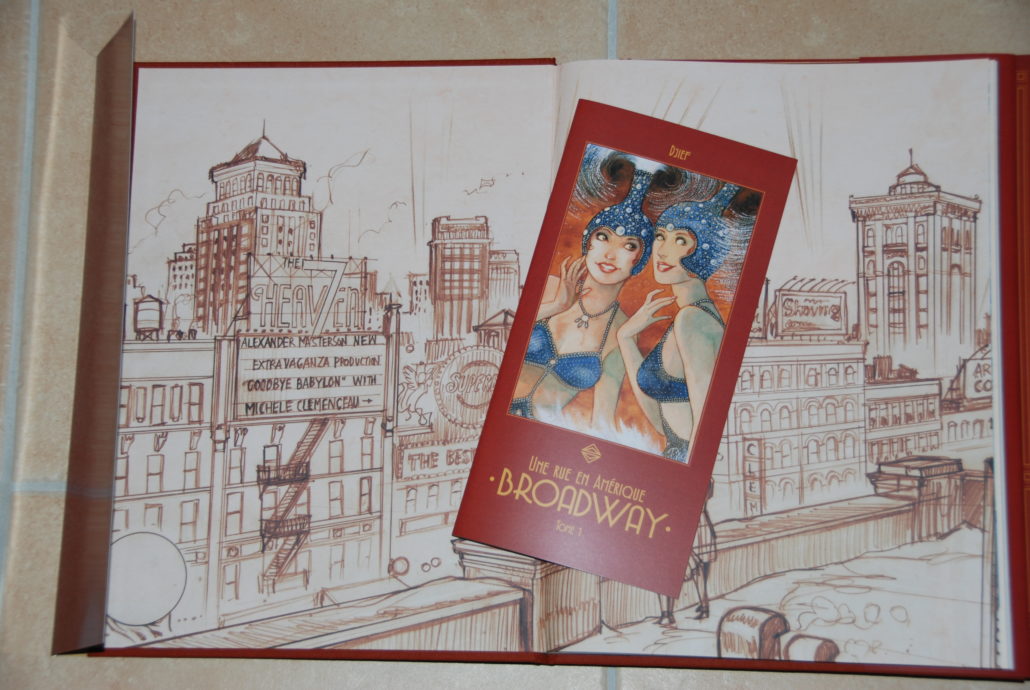 1 album intégralement toilé (toile couleur renard) de 92 pages en quadrichromie, présentant 80 pages et 2 insérés cousus dépliants 3 volets de 70 cm de long… comprenant : 8 pages de cahier graphique+la couverture couleur de l’album original sans texte+ 2 pages inédites en couleur (le prologue non publié de l’histoire) + 46 planches en version sépia orangé (avec les textes) + un cahier graphique (le livre d’or du Chapman’s Paradise 1928) de 22 pages (+ les 12 pages des insérés 3 volets, soit au final 34 pages) présentant 42 aquarelles inédites de Djief réalisées en exclusivité pour la version collector de cet album. L’album présente en outre une couverture et un quatrième inédit.
